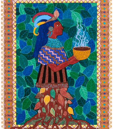 Le Cacao est une plante d'origine amérindienne, son utilisation remonte aux civilisations précolombiennes. Son nom viendrait d'un mot maya signifiant "le sang du coeur". Elle était considérée comme la nourriture des Dieux chez les mayas et les aztèques. Elle est toujours utilisée en Amérique centrale et du sud lors de cérémonies comme plante enthéogène à des fins spirituelles, chamaniques.